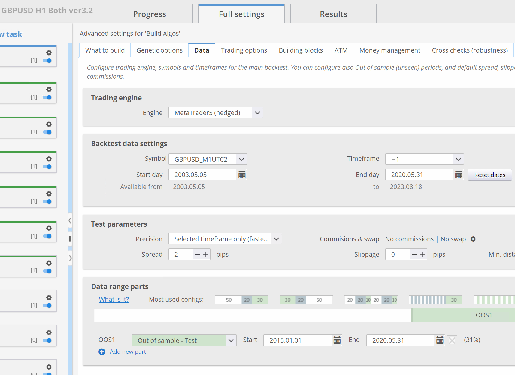 • イギリス株価指数100(UK100)の4時間足の自動売買システムを開発